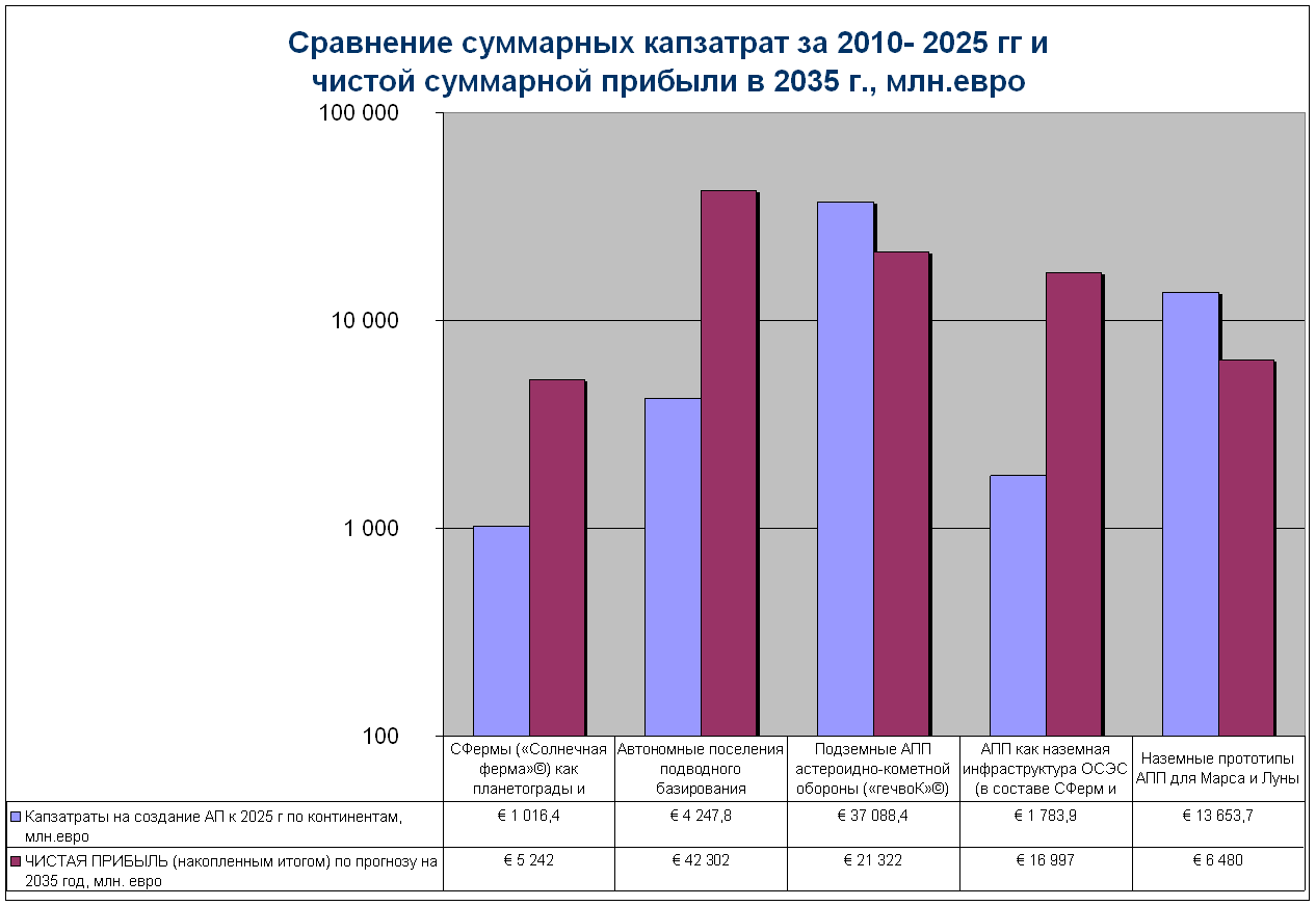 По крайней мере, цена вопроса отнюдь не превысит тех колоссальных затрат, которые требуются, например, для космических программ… Не подвязываясь напрямую под исход космической гонки, представляемая Программа не только послужит эффективным аккумулятором, транслятором и потребителем достижений космических разработок, но и будет им немало способствовать. На участке с экстремальными наземными условиями будут отрабатываться те проблемы жизнедеятельности, с которыми человечество, с высокой вероятностью неизбежно, столкнется при осуществлении межпланетных программ, предусматривающих обживание космических объектов. Это означает возникновение «здесь и теперь» качественно новой категории рынка сбыта и потребления. Рынка планетонавтики..!