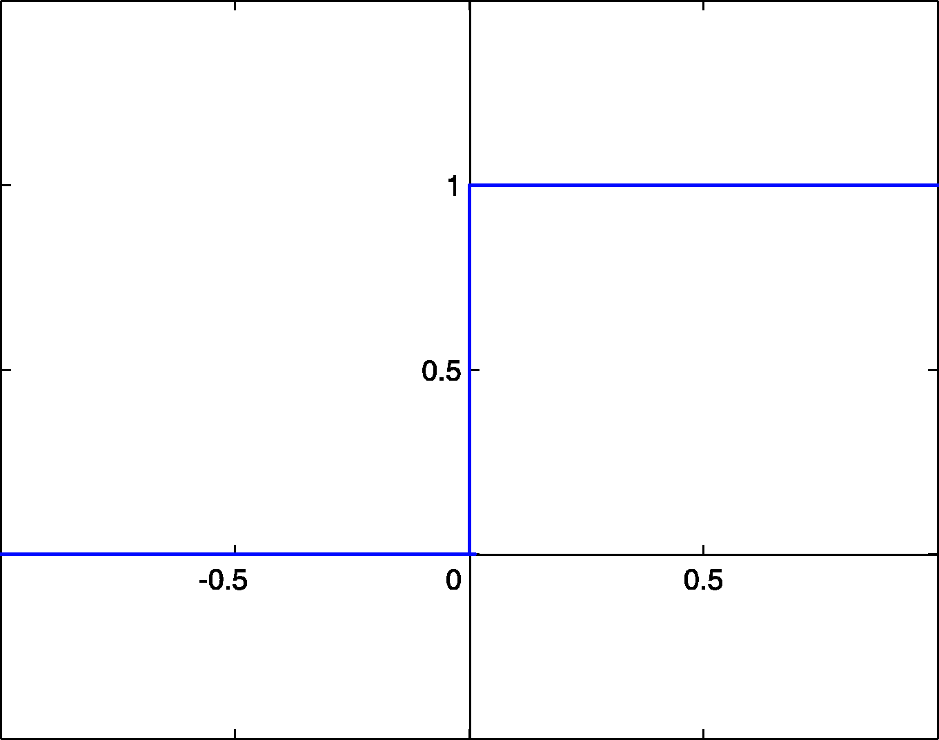 Здесь — сдвиг функции активации относительно горизонтальной оси, соответственно под следует понимать взвешенную сумму сигналов на входах нейрона без учёта этого слагаемого. Ввиду того, что данная функция не является дифференцируемой на всей оси абсцисс, её нельзя использовать в сетях, обучающихся по алгоритму обратного распространения ошибки и другим алгоритмам, требующим дифференцируемости передаточной функции.