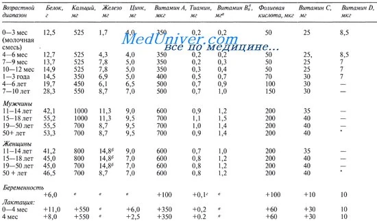 Нормы питания для взрослого населения России подразделяются в зависимости от пола, возраста, характера труда, климата, физиологического состояния организма (беременные и кормящие женщины).
