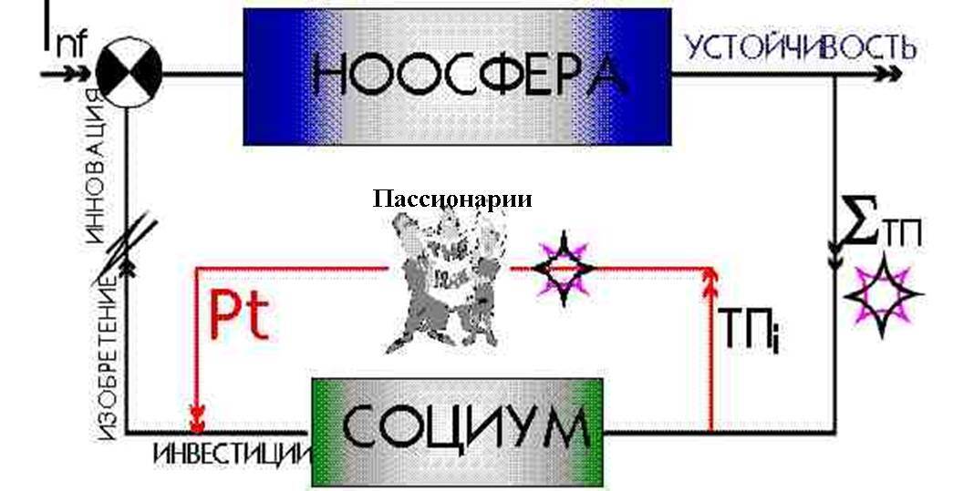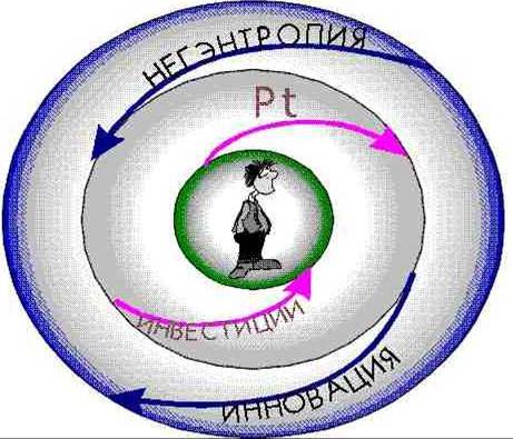 Глобальный антропо-социо-космический Альянс поддерживается всепронизывающим информационно-энерго-материальным (обобщенно называемыми инвестиционным) обменом. Способность Человека порождать инновации как качественно новые знания о способах разрешения нетривиальных проблем оплачивается ему Социумом соответствующими инвестициями. В то же время, развитие Социумом собственной инновационной деятельности и воплощение ее результатов в технологиях ("прогресс") вознаграждается ему со стороны Вселенной соответствующей отсрочкой энтропийной смерти (притоком негэнтропии). Отсюда вывод: жизнь на Земле возможна постольку, поскольку добросовестно Социум отрабатывает свою миссию по информационному пополнению Ноосферы результатами собственной инновационной деятельности.